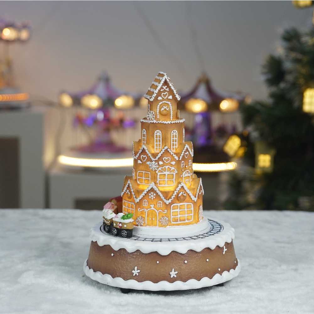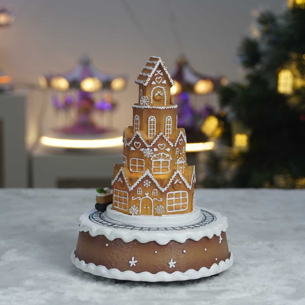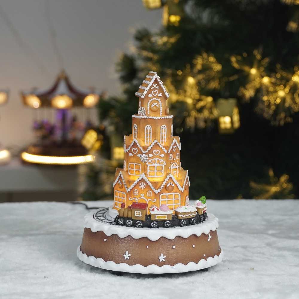 Torre Navideña de Jengibre con Tren Giratorio y Música
